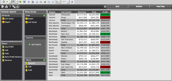 Once you create a Visual Insight analysis, you can add a Grid visualization to the analysis to display attributes and metrics in a tabular layout, as shown in the image below.